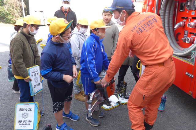 本日3学年の消防署見学が行われました。消防士の仕事や消防車、救急車の器具について丁寧に説明していただき、子どもたちはメモを取ったり質問したりしながら積極的に話を聞いていました。2組の見学中に出動要請があり、今までにこにこ話をしていた消防士さんが突然真剣な顔つきとなり、素早く着替えて号令を掛け合う様子を目にし、子どもたちも大緊張でした。消防車の出動を目の前で見るという貴重な学習となりました。残念ながら、午後に予定していた3組の見学は延期となってしまいました。来月以降に実施する予定です。