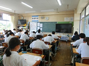 1年生の各クラスのようす。初めての中間テストに真剣に取り組んでいました。 |