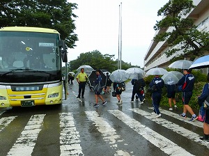 中央地区中学校陸上競技大会2日目です。雨の中、選手たちは元気に出発していきました。