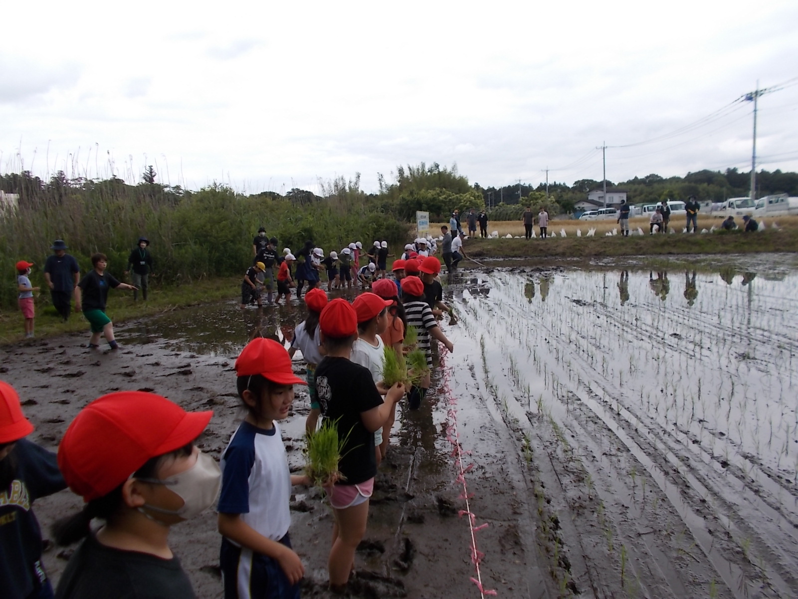 お手伝いに来てくださった保護者の皆様、地域の皆様、JAの皆様には、苗がまっすぐ植えられるようにロープを張ったり、田植えの後、手足をきれいにすることを手伝ってもらったり等、たくさんのご協力をいただき、とてもスムーズに行うことができました。