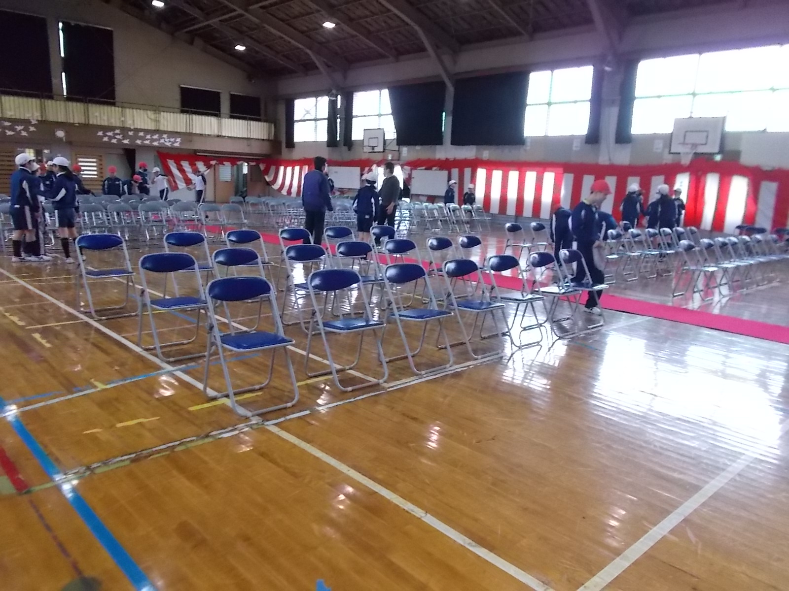 卒業式まで残り11日となり、体育館の卒業式会場準備が始まりました。