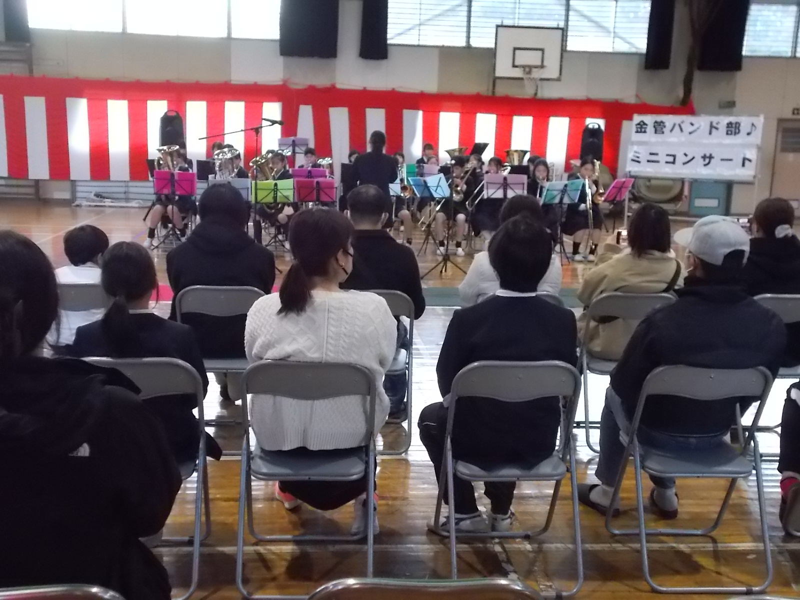 3月7日(金曜日)、昼休みには児童向けに、放課後には金管バンド部保護者向けに、金管バンド部によるミニコンサートが行われました。