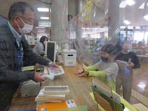 小川図書館では,そこで働く方々のお仕事の話を聞いたり,館内を案内していただいたりしました。7万7千冊ある本の中から,今日はだれも1冊ずつを借りました。借りた本を除菌する機械があることも知り,借りた本を除菌する体験もしました。