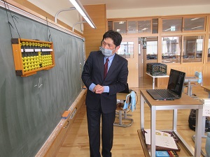 今日は,3年生を対象にオンラインそろばん教室を行いました。小川珠算計理塾から講師の先生をお招きし,指導していただきました。そろばんのしくみや使い方について教えていただき,そろばんを使ってたし算やひき算の計算にチャレンジしました。