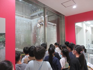 始めに,ゴミ処理の仕方についてDVDを見て学び,その後,施設内の見学をしました。様々なトラックがたくさんのゴミを載せて運んできたり、大きなクレーンがたくさんのゴミをつかんで運んだりしている様子に,南っ子たちは驚き,夢中になってメモをしていました。「1000度の熱で燃やしているんだって!」「空気を汚さないように煙突が工夫されているんだね。」「熱を利用して電気を作っているってエコだね!」「ゴミを少なくできるようにしたいと思った。」等,しっかりと学ぶことができました。