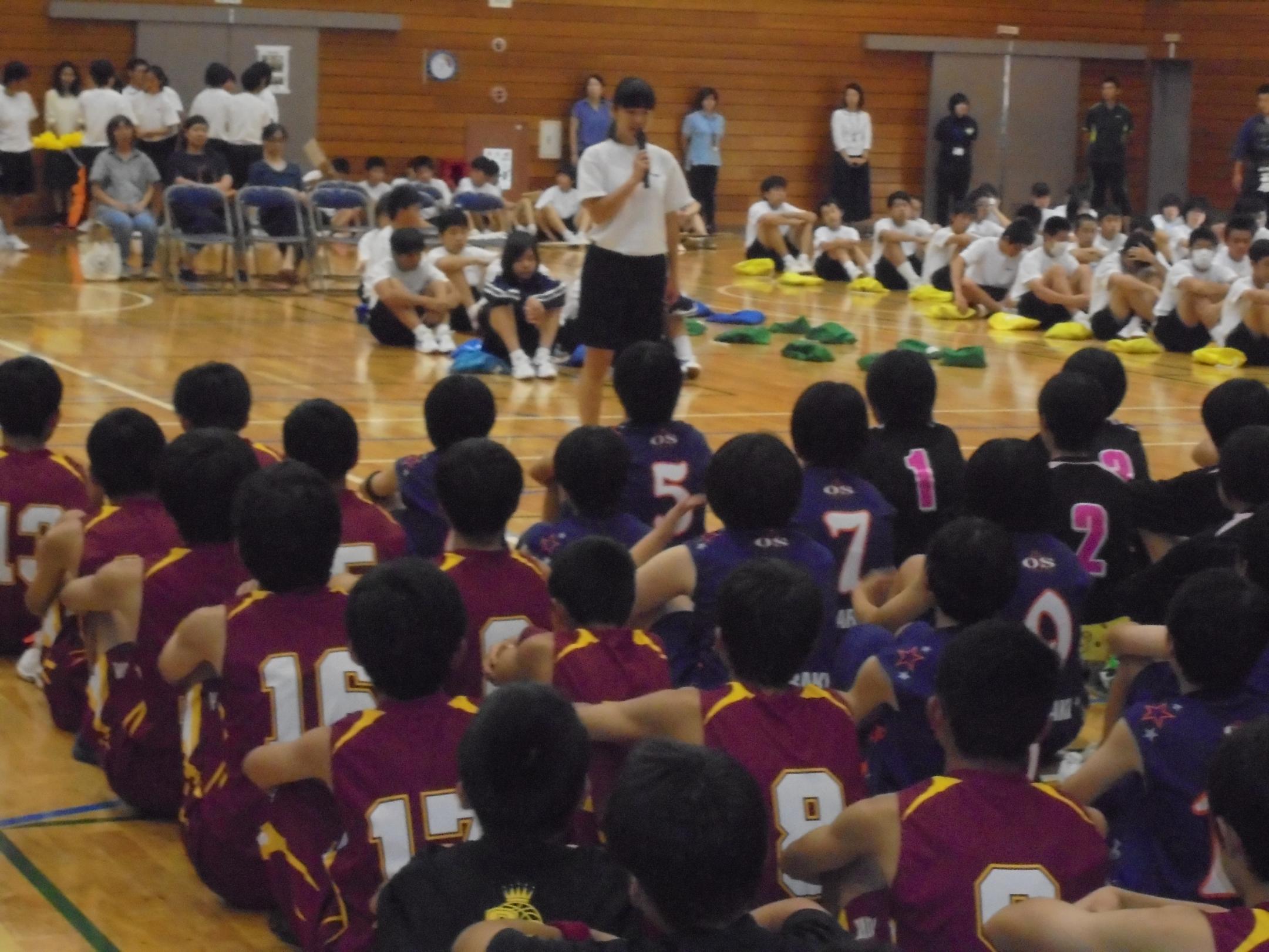 本日(25日)東茨城地区新人体育大会に向けての壮行会がありました。生徒会からの励ましの言葉,各部活動の抱負発表に続いて,3年生からのエールがありました。選手の皆さんの健闘を祈りたいと思います。