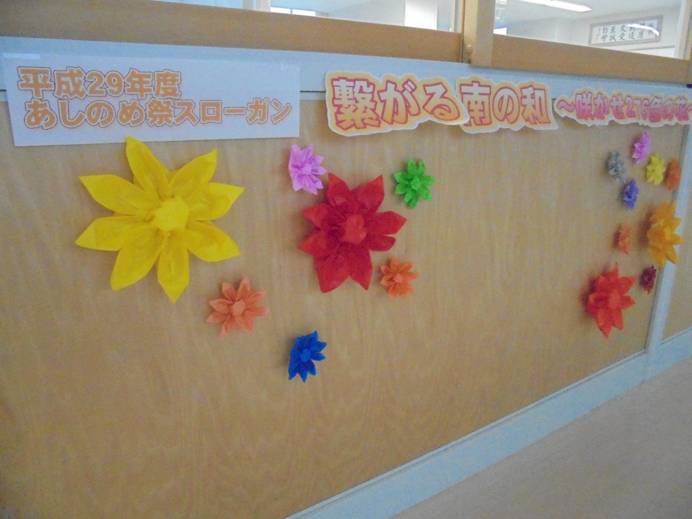 今週土曜日に行われる「あしのめ祭」の準備が生徒会を中心に進められています。あしのめ祭キャラクターの募集があり,各学級の合唱練習も佳境になり,学校全体が文化祭の雰囲気になってきました。