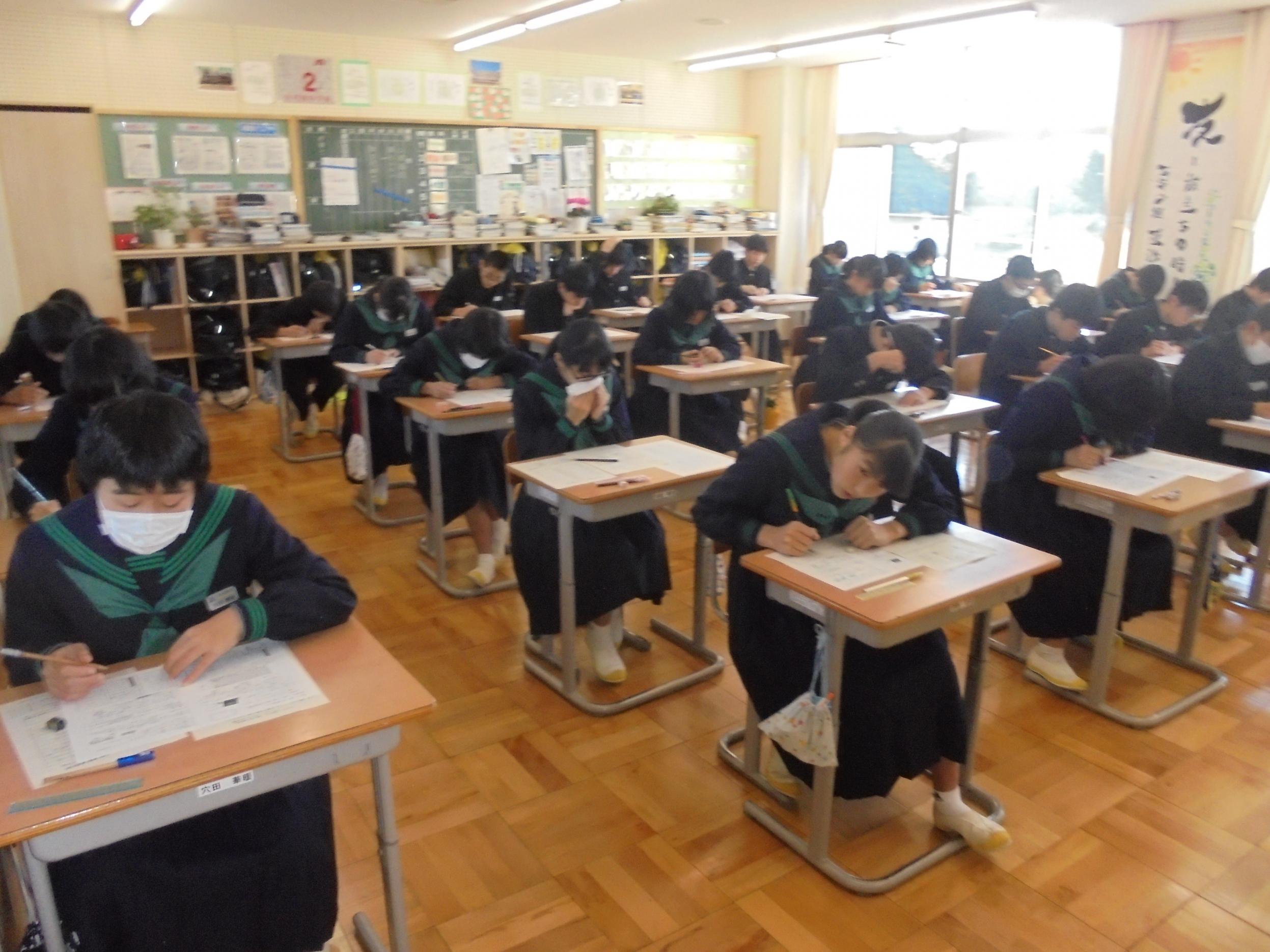 本日と明日の2日間にわたって第2学期の期末テストがあります。今日は,技術・家庭,音楽,美術,保健体育のテストがありました。