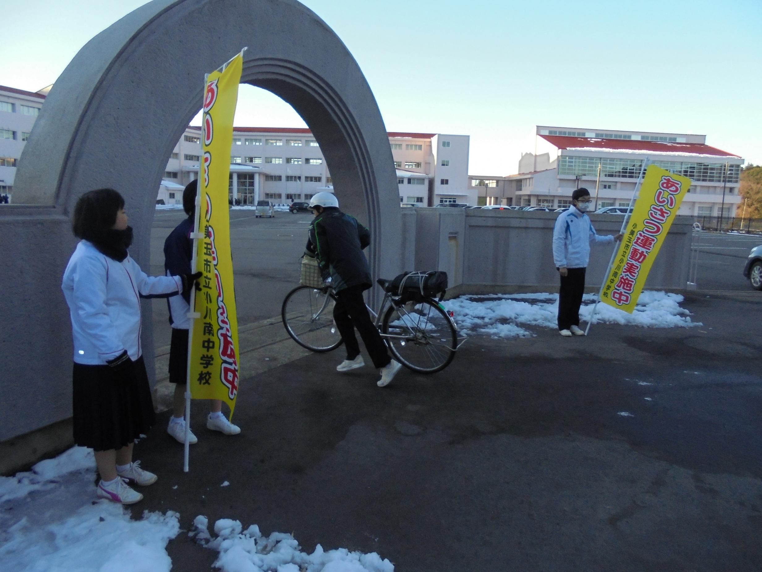 グラウンドの雪も徐々に解け始まっています。今朝の寒さは,ここ数年で一番の冷え込みだそうです。そんな中でも,生活向上委員会の生徒は,「朝のあいさつ運動」を行っています。当番の生徒(第1学年)は国旗の掲揚をしています。寒い中でも,それぞれの活動をしっかりと行うところが,本校の強みだと思っています。
