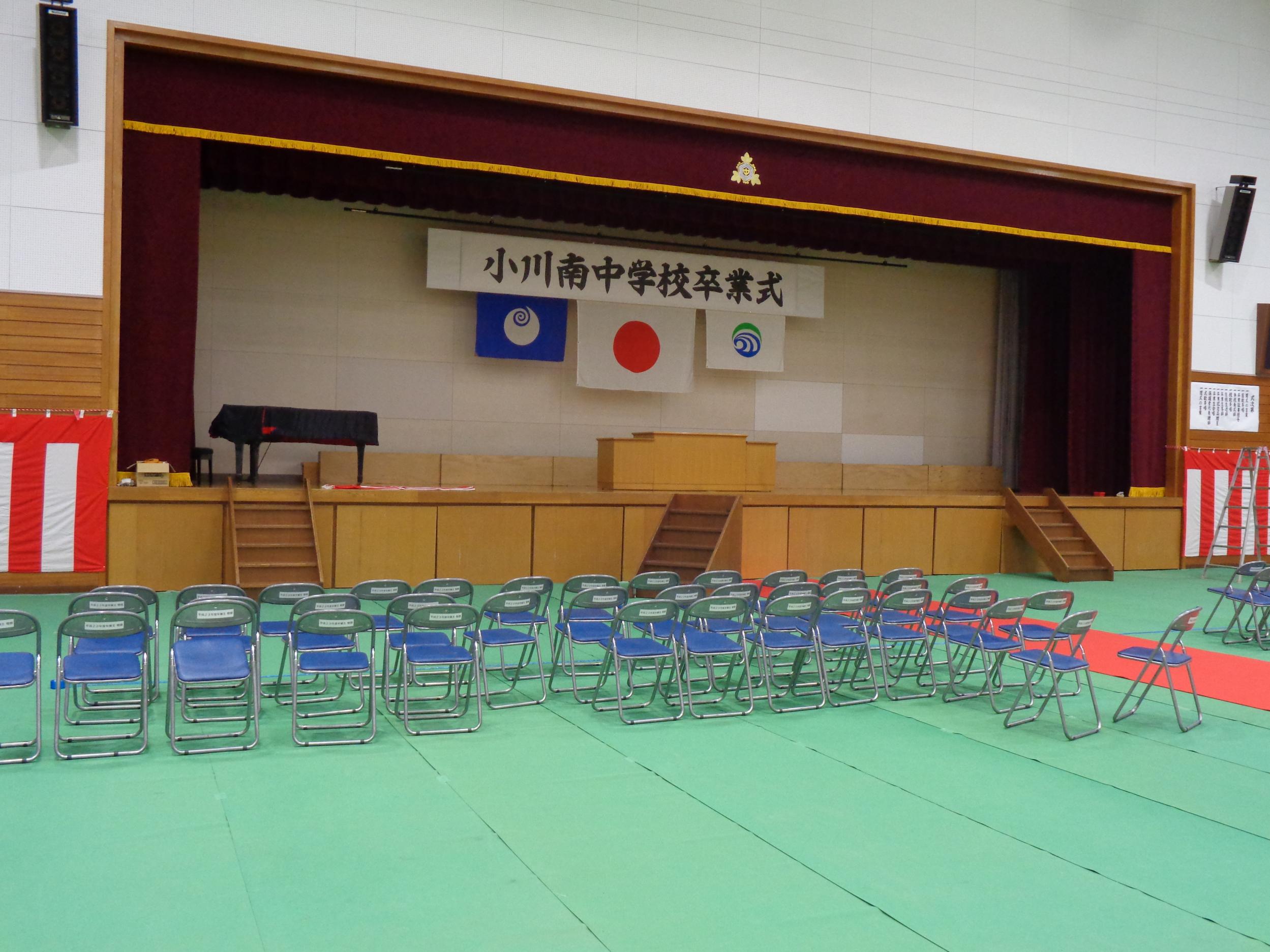 職員総出で卒業式の準備が始まりました。シート敷からみんなで協力して,準備を進めています。飾りつけも順調に進んでいます。元気に卒業式に参加できるように,健康に気を付けて生活して下さい。