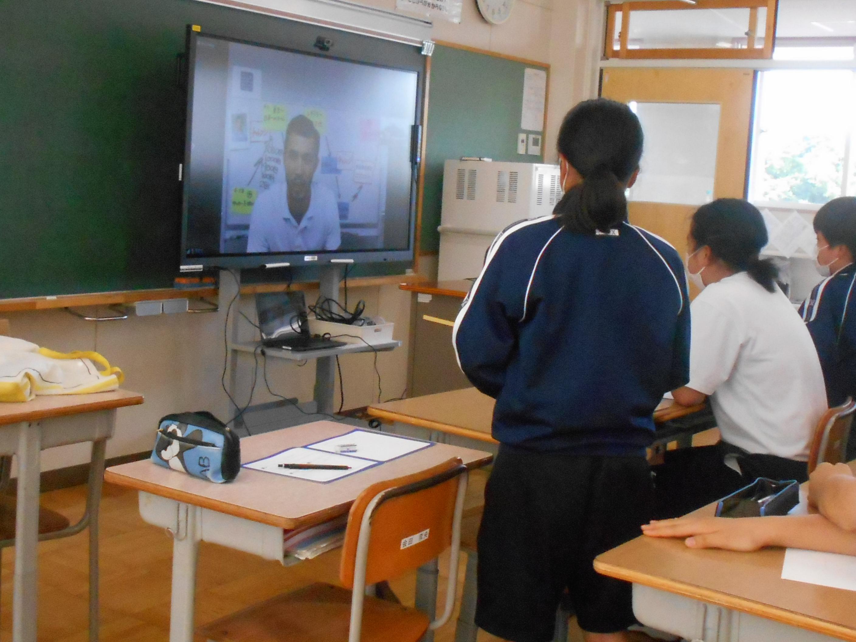 2年生「総合」の時間に,「夢先生」が行われました。今年はリモートで元プロサッカー選手の川股さんのお話を伺いました。